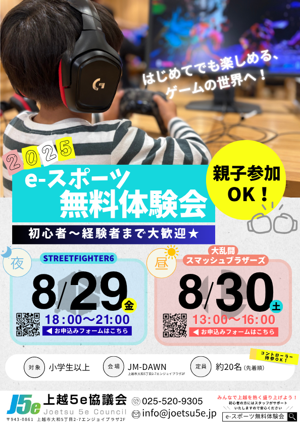 Information<8/29.30>eスポーツ無料体験会のお知らせ